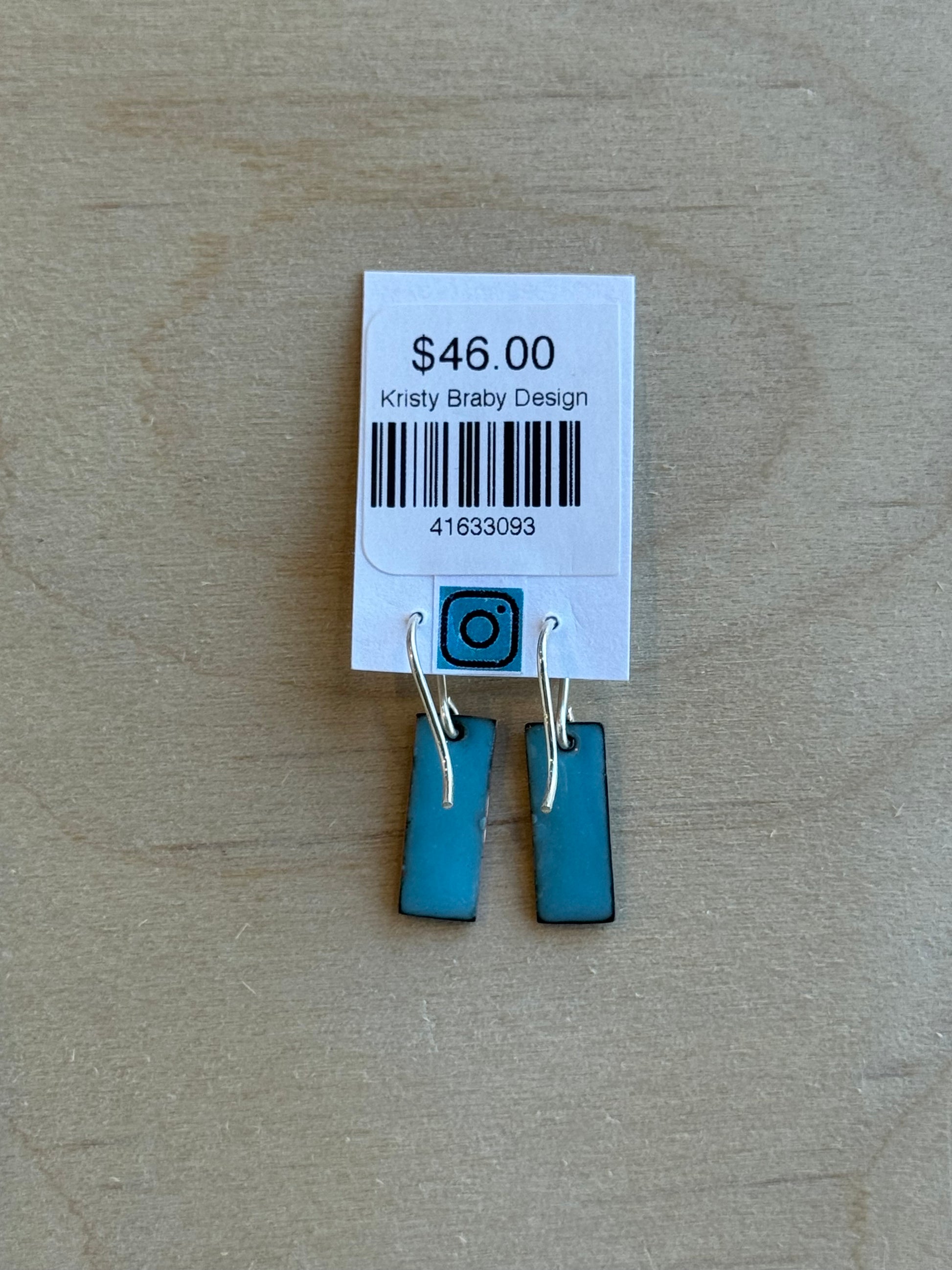 Hand-cut, kiln fired enameled copper on sterling silver earwire.