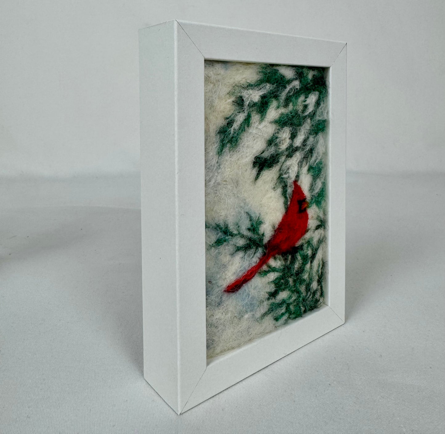 Needle-felted wool fiber on textile canvas