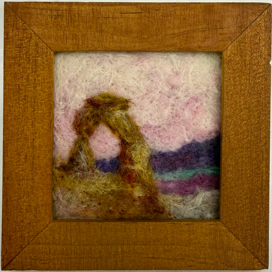 Needle-felted wool fiber on textile canvas